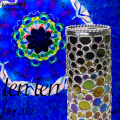 山見浩司氏に師事を受けた新人作家で、デザインや力のある万華鏡つくりで頭角を現し一目置かれるAkiさん。 オイル&ドライチェンバースコープ「 Ten Ten /テンテン 」 小さなガラスを緻密な作業で繋ぎ合わせた、おしゃれなステンドグラスの万華鏡。 筒なかを覗くと空間をブルーに染めながら、考え抜かれたガラスオブジェクトが均整の取れた美しいイメージを展開。 Aki氏からten ten /テンテンについて。 インパクトのある丸い筒状のカレイドスコープが作りたくて私にも作れないかな?がきっかけでした。 丸くカットしたステンドグラスを一つ一つ丁寧に研磨する事に拘りました。 また煌びやかなイリディッセントグラスを用いてますので存在感があります。 丸の意味として 優しさや永遠など良い言葉の意味も作品に込めてみました。 オイルとドライの二層式万華鏡になっており、ゆっくりと変化するイメージと、瞬時に姿を変えるイメージの両方を一つの曼荼羅で表現しました。 先端のマーブル 模様のガラスからも明かりが入ります。 やわらかに変化する明るい映像をお楽しみください。 ※中のイメージ映像は、自然光と白色LEDで撮影しました。 ライトに向けてご覧になると一層色彩鮮やかに楽しむことができます。 ※実際のお色とPC上に表示される色合いは若干異なる場合がありますのでご了承ください。 |