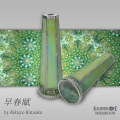 かたおかきくよさんの工房「GLASS JAM/グラスジャム」10周年を記念した万華鏡「早春賦」が届きました。 2021年名古屋の個展で発表展示した「早春賦」をサイズも内容もリニューアルし、今回の記念スコープに仕立てあげたものです。 タイトルは中学の教科書にも載る、暖かい春を待ち侘びる気持ちを歌った旋律も美しい「早春賦」からとったものです。 早春の暖かかったり、寒かったりと行きつ戻りつの季節の様子が、「早春賦」を覗いた万華鏡模様と重ね合わさる不思議な万華鏡。 掲載のイメージ写真でもおわかりの通り、ほんの少しの明かりの違いで、イメージを覆う色合いがおおきく変わってしまうのです。 早春賦にはabの2本のご用意があり、ボディーのガラスのカラーに合わせ、中のガラスオブジェクトも若干色味が異なっています。 掲載写真のイメージ映像はabかなり違いが出ていますが、実際はそれほど大きくは違いません。 つまり・・・不思議な万華鏡なので・・・ 変化する季節を感じながら・・気持ちにマッチングした映像を求め・・どうぞ気長にお愉しみくださいませ。 中のイメージ写真は、自然光と白色ライトを補助的に使用して撮影いたしました。 ※実際のお色とPC上に表示される色合いは若干異なる場合がありますのでご了承ください。 |