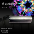 one of a kind の人気シリーズ「妖 」あやかし 「2024 妖 No.043」 オイルチェンバーにドライのオブジェクトが重なったハイブリット型。 正面からダイレクトに明かりを取り入れながら覗き、鮮やかな発色展開を愉しみます。 イメージ映像は正面に白色LEDのライトを向けながら撮影しています。 ぜひ、室内でご覧になるときはライトスタンドを使って正面から明かりを取り入れご覧になってみてください。 強めの色彩が炸裂するアグレッシブな万華鏡です。 細野氏から「妖」について・・・ 今まで偏光万華鏡を作るときには、明るい白い壁に向けて作っていました。 これは、室内にありがちな弱めの透過光を基準にしていたという事です。 それは万華鏡を手に取ってふと覗いた時に、映像がある程度キチンと見える方が万華鏡として親切だろうと考えていたからです。 今回、もっと強い色を作りたいと思いました。 弱い光でも見えるようにという固定観念を捨て去る事でそれは現実になりました。 この色を作りたかったのです。 この世の色で無いような、不思議な万華鏡になったと思います。 光源に直接向けて覗いてみて下さい。 ※中の映像は白色LEDと自然光で撮影しています。 独特な虹色イメージを創りだす偏光フィルムを使ったチェンバーシステム。 ボディーとなる金属パイプの表面は、時間をかけ幾度もワッシャー加工を施すいぶし銀のような仕上げ。 そして本体中央部には小さく作家のサインが彫られています。 ミラーシステムを駆使した数々のミラーアレンジとサイズのバリエーションは、 合わせ鏡の特性を利用した万華鏡アートの可能性を最大限に引き出しています。 ※実際のお色とPC上に表示される色合いは若干異なる場合がありますのでご了承ください。 |