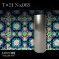 【T×H No.063】 高林千稔氏のガラスのオブジェクトを使ったコラボで新たな魅力を引き出した細野朝士氏、魅力あふれるコラボイメージをお愉しみいただけます。 木製万華鏡を得意とする高林千稔氏とのコラボ タイトルのT×Hはそれぞれの名字のイニシャルを表しています。 個性的なオブジェクトを創る高林氏がガラスのオブジェクトを・・・細野氏は自分が作るポラライズドとオブジェクトとを合体させながら、可能性を最大限に引き出すようセルに入れ込んでいきます。 オイルとドライのハブリット効果もさらに加わり、ダイナミックに色彩に変化を与えながら、立体感と透明感を併せ持つ魅力ある万華鏡に仕上げました。 覗くと4ポイントのキルト模様をつくります。 明かりの向きや強弱、自然光や光源の種類で色のトーンも変わってきます。 ぜひ色々な場所とあかりで覗いてみて下さい。 尚 中の映像は自然光と白色灯で撮影しました。 細野朝士作品・・・ 独特な虹色イメージを創りだす偏光フィルムを使ったチェンバーシステム。 ボディーとなる金属パイプの表面は、時間をかけ幾度もワッシャー加工を施すいぶし銀のような仕上げ。 そして本体中央部には小さく作家のサインが彫られています。 ミラーシステムを駆使した数々のミラーアレンジとサイズのバリエーションは、 合わせ鏡の特性を利用した万華鏡アートの可能性を最大限に引き出しています。 忙しい生活の中で一時の非日常を楽しみ、心を癒す、そんなゆとりのある生活スタイルを万華鏡を通して提案したいというのが作家 細野さんの考えです。 ※実際のお色とPC上に表示される色合いは若干異なる場合がありますのでご了承ください。 |