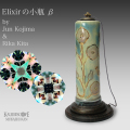 「Elixirの小瓶 β」 ”エリキシル”とはあらゆる病気を治す「錬金薬」「霊薬」の液体を表す意味があるらしい・・・ まるで骨董屋の棚に並んだ薬瓶のような外観や中の映像まで、霊薬としての効果ありといった趣きである。 アイホールキャップを外して本体だけを手に取り、筒を回しながらお楽しみください。 中心の四角い模様の周辺にもひかりの反射映像ができる幻惑的な映像展開です。 小嶌淳氏と陶器の筒を製作する喜多里加さんとのコラボレーション 高さ11センチの小さな万華鏡ですが、いつもながら細かく丁寧な仕事をしている小嶌淳作品です。 ※箱入り。 中の映像撮影は、主に天気の良い自然光で、そのほか補助的に白色LED撮影も行っています。 ※実際のお色とPC上に表示される色合いは若干異なる場合がありますのでご了承ください。 |