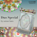 覗き口(eyehole)が2箇所あり、それぞれ異なるミラーシステムが内蔵されたデュオ・スペシャル 大きな円形模様がひとつ(2ミラー)、もう片方は連続模様が広がります。(3ミラー) 本体をガラスのスタンドから外して、水平になるよう手に持ち、ワンドの端を少しずつ回してご覧ください。 ステンドグラスのオイルワンドスコープ、デュオ・スペシャルには、このほかレッド、ブルー、ブラックのカラーバリエーションがあります。 前面のダイヤのモチーフを囲むイリディッセント・ガラスも美しく、サイズは13センチですが台座も付いて存在感のある万華鏡に仕立てました。 サイン入り。 ※専用ボックス入り ※実際のお色とPC上に表示される色合いは若干異なる場合がありますのでご了承ください。 |